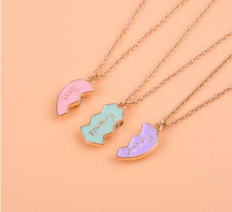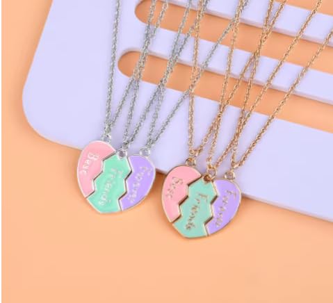 Generic - طقم قلادة "أفضل الأصدقاء" 3 قطع - تصميم قلب مقسم بألوان الباستيل الجذابة - سلسلة صداقة أنيقة للبنات - قطعة واحدة (ألوان عشوائية)