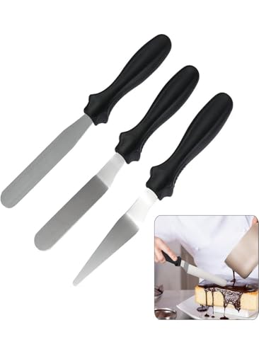 generic - طقم أدوات تزين الكيك مكون من معلقة توزيع لتزيين الكيك من الفولاذ المقاوم للصدأ ومعلقة سباتولا لتوزيع عجينة السكر وملعقة مسطحة للخبز والمعجنات للاستخدام في المطبخ، 3 قطع
