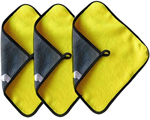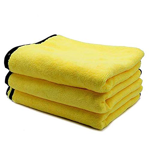 Generic - فوطة تجفيف السيارة من المايكروفايبر لتنظيف السيارة والمنزل فوط تنظيف النوافذ والزجاج والفولاذ المقاوم للصدأ والطاولات، لون أصفر، من 3 قطع