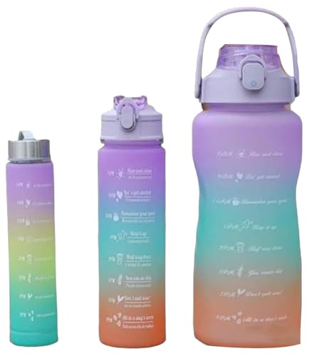 Dollar for Import - مجموعة زجاجات رياضية تحفيزية ملونة 3 قطع، زجاجة مياه رياضية ذات سعة كبيرة. من دولار للاستيراد، TDH-1840-1289
