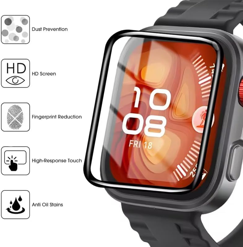 - [فائق الوضوح وحساس للمس] مع شفافية عالية بنسبة 99% وتصميم رفيع للغاية، توفر شاشة هواوي ووتش فيت 4 جودة صورة زاهية وملونة، مما يضمن وضوح واستجابة شاشة الساعة. تقنية اللمس اللمسية عالية الاستجابة تجعلك تشعر وكأنك شاشة عارية أثناء الاستخدام.