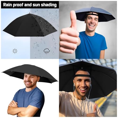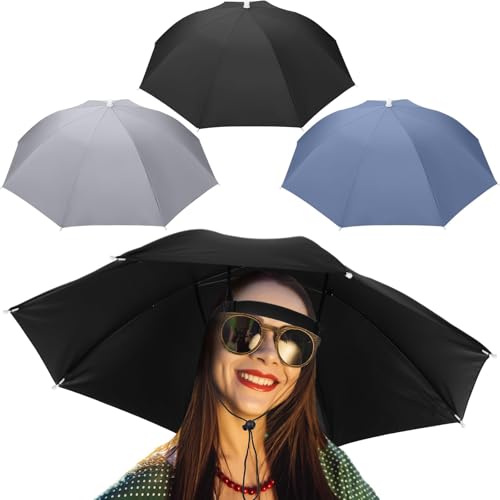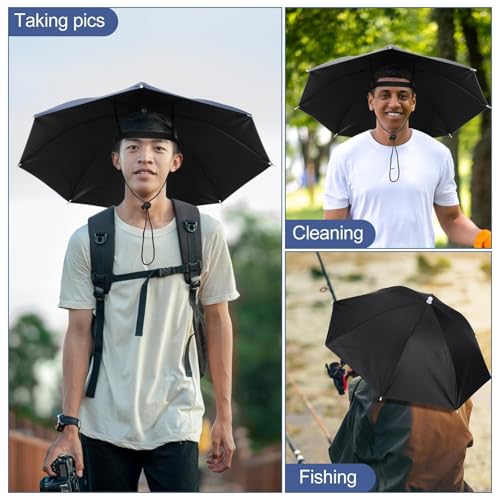 Azonee - طاقية مظلة صيد السمك، شريط رأس قابل للتعديل دون استخدام اليدين، غطاء مظلة قابل للطي ومقاوم للماء للحماية من الأشعة فوق البنفسجية لصيد الأسماك والجولف والتخييم والشاطئ والبستنة والأماكن الخارجية 3 قطع