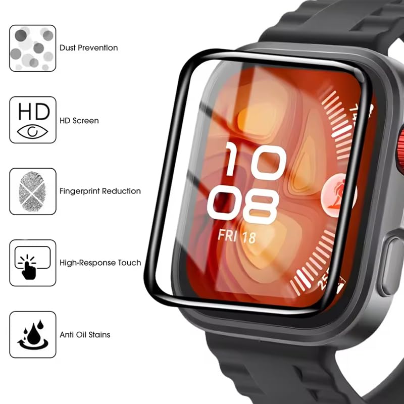 - [فائق الوضوح وحساس للمس] مع شفافية عالية بنسبة 99% وتصميم رفيع للغاية، توفر شاشة هواوي ووتش فيت 4 جودة صورة زاهية وملونة، مما يضمن وضوح واستجابة شاشة الساعة. تقنية اللمس اللمسية عالية الاستجابة تجعلك تشعر وكأنك شاشة عارية أثناء الاستخدام.