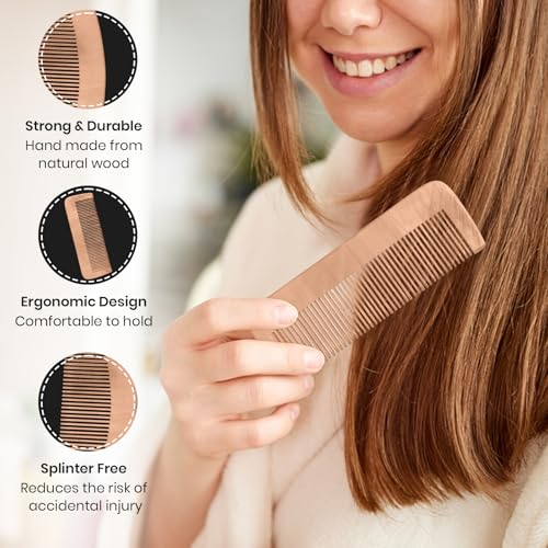 - 2️⃣ مضادة للكهرباء الساكنة وفك التشابك - على عكس الأمشاط البلاستيكية، تنزلق هذه الأمشاط الخشبية المضادة للكهرباء الساكنة بسلاسة عبر الشعر، وتمنع التشابك وتقلل من تساقط الشعر.