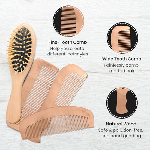 - 1️⃣ مجموعة مشط خشبية فاخرة مصنوعة يدويًا - مصنوعة من الخشب الطبيعي عالي الجودة، هذه الأمشاط لطيفة على شعرك وفروة رأسك مع تقليل التقصف والتجعد.