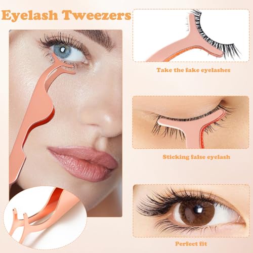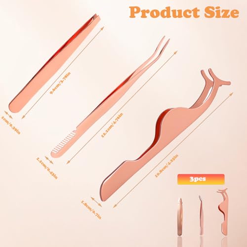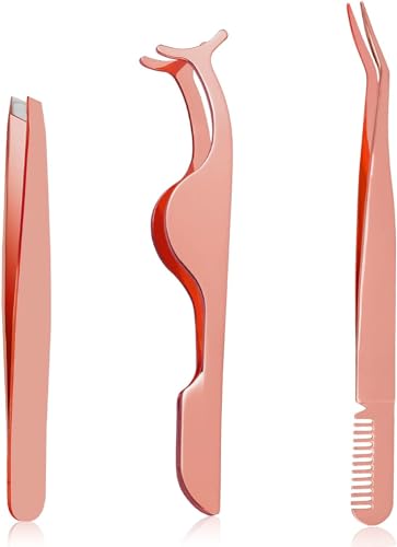 Xiansr - ملقاط رموش، مجموعة ملاقط من فولاذ مقاوم للصدأ لوضع الرموش وإزالتها للمبتدئين، 3 قطع