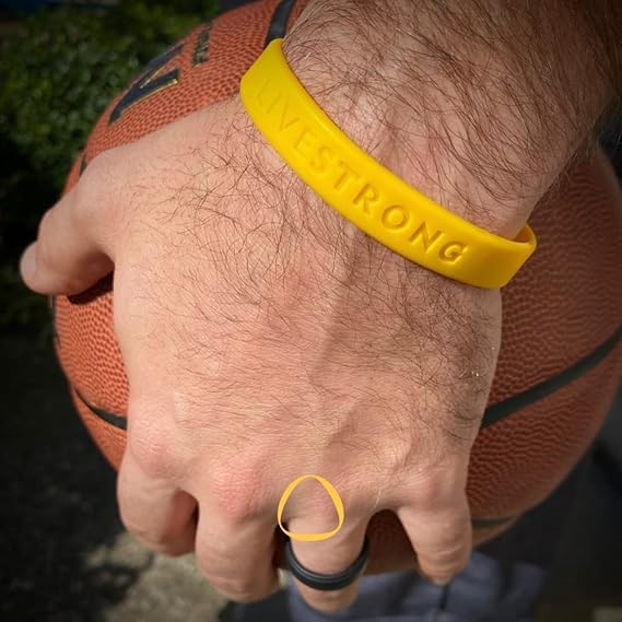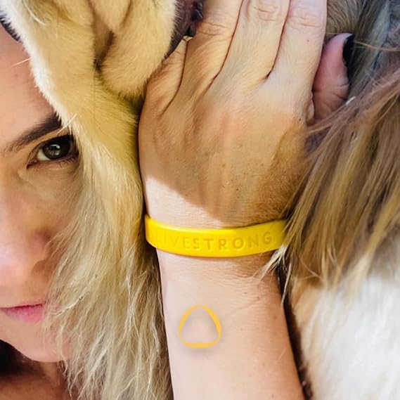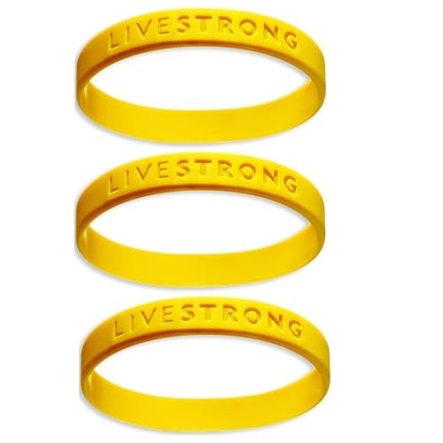 fashion mania - سوار معصم مطاطي لدعم السرطان من لايفسترونج باللون الاصفر يشجع الكلمات الايجابية ويقدم كلمات مريحة وملهمة، 3 قطع