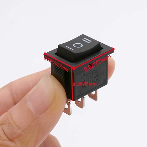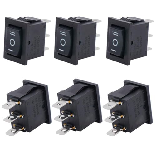 Generic - مفتاح تبديل كهربائي روكر بـ 3 أطراف و3 أوضاع تشغيل/إيقاف/تشغيل بتيار متردد 6 امبير/125 فولت، 10 امبير/250 فولت SPDT للسيارات والقوارب، لون أسود، 3 قطع، موديل KCD1-2-103