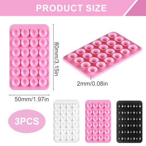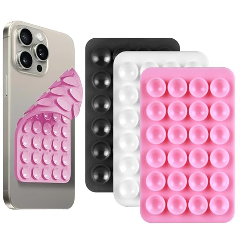 BakeWhiz - حامل موبايل بقاعدة لاصقة من السيليكون، حامل مزدوج الجوانب، لاصق متعدد الوظائف، مضاد للانزلاق بدون استخدام اليدين، لمراية الاستحمام والسيارة وصور السيلفي والفيديو (أسود، وأبيض، بينك فاتح)، 3 قطع