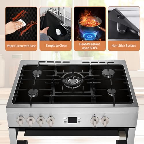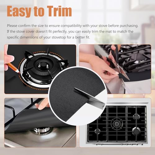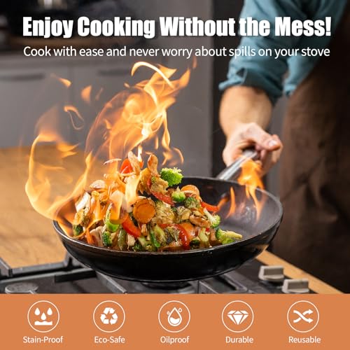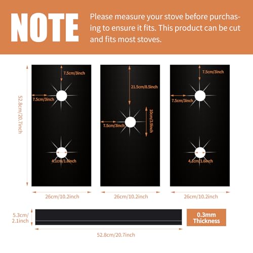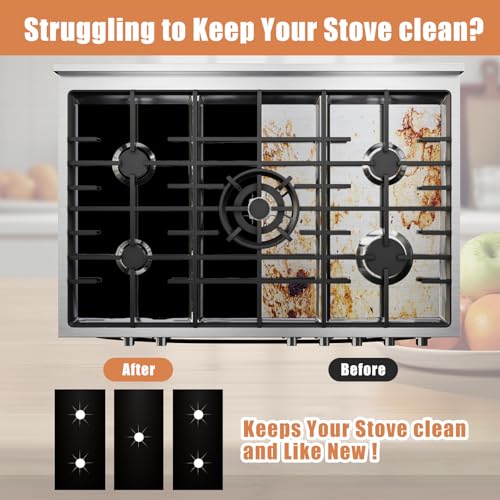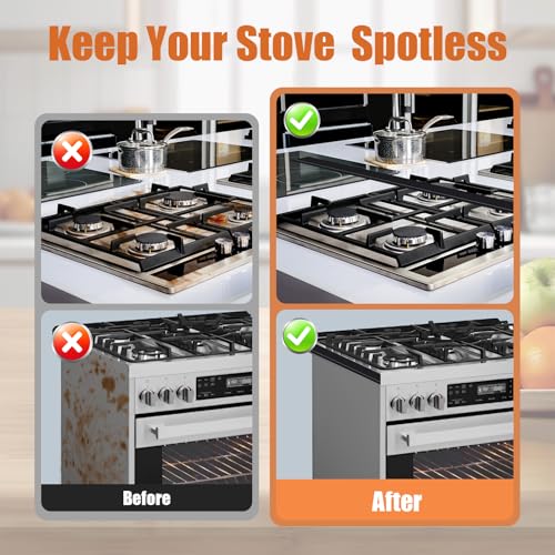 - سُمك فائق 0.2 ملم: مصنوعة من مادة متينة ومقاومة للحرارة بسمك 0.2 ملم، توفر أغطية الموقد الخاصة بنا حماية قوية ضد الانسكابات والبقع والخدوش، مما يطيل عمر موقد الغاز الخاص بك.