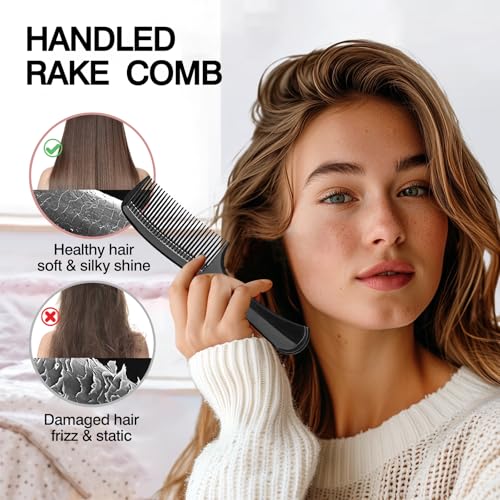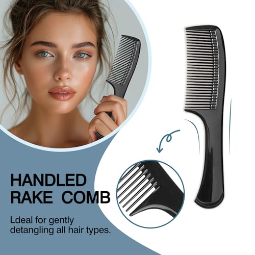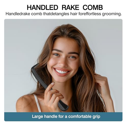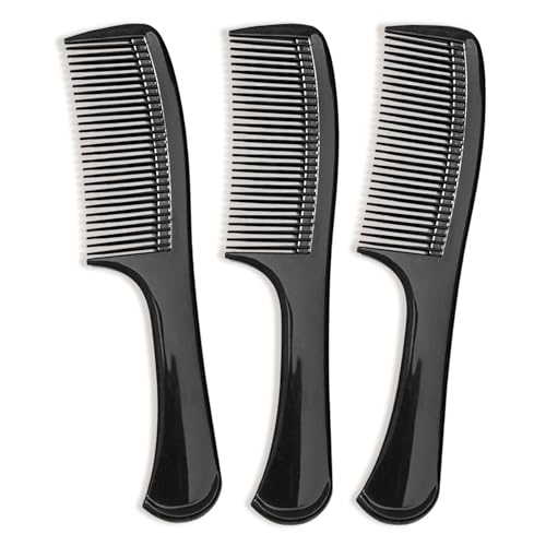 Zoolinn - مجموعة امشاط باسنان عريضة من 3 قطع، مشط لفك تشابك الشعر وتصفيفه، مع قبضة مريحة للشعر المتوسط والكثيف، تصميم صالونات التجميل، للرجال والنساء (اسود)