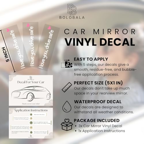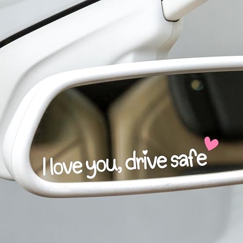 BOLOBALA - ستيكر مراية السيارة ثري اكس بعبارة I Love You Drive Safe، ملصقات سيارة لطيفة للنساء، ستيكر مراية الرؤية الخلفية من الفينيل (قلب ابيض وردي)