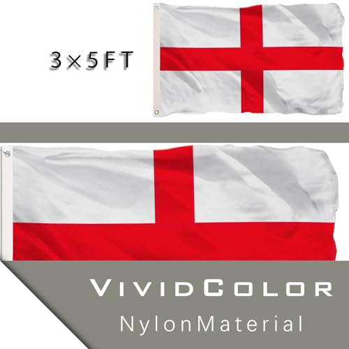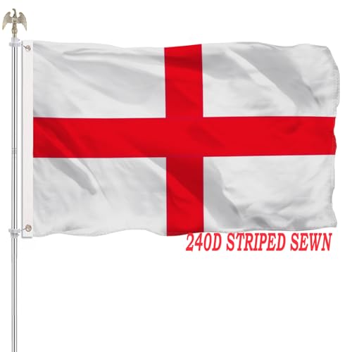 tnpun - علم انجلترا 3 × 5 للاماكن الخارجية بالوان زاهية من قماش النايلون 210D شديد التحمل مع حلقتين نحاسيتين و4 صفوف من الغرز