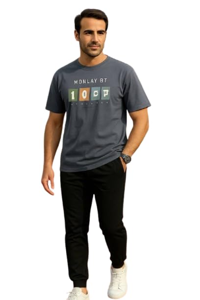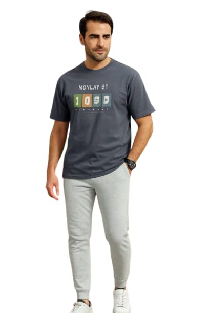 Generic - بيجامه رجالى صيفي - تيشرت قطن سينجل ليكرا و بنطلون سمر ملتون - لون رمادي - مقاس 3XL - موديل رقم #: 462-0912