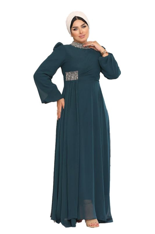 GAMAL SONS FOR ABAYA - فستان من جمال أبناء للعباية مصنوع من الشيفون للنساء، قصة فضفاضة، قابل للتعديل ومرن ومريح، مقاس 3 إكس لارج