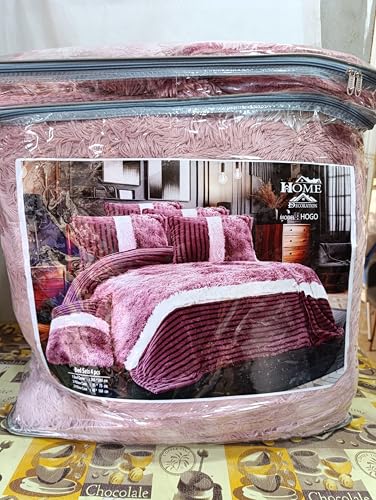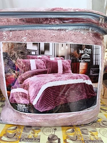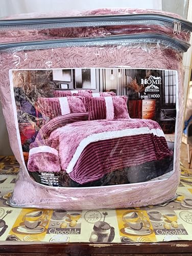 Generic - لحاف فرو كبير هوم كور يشن 4 قطع 1 265 *240 سم و 2 خدادية مقاس 55 *75 مخدة 45 * 160 بني