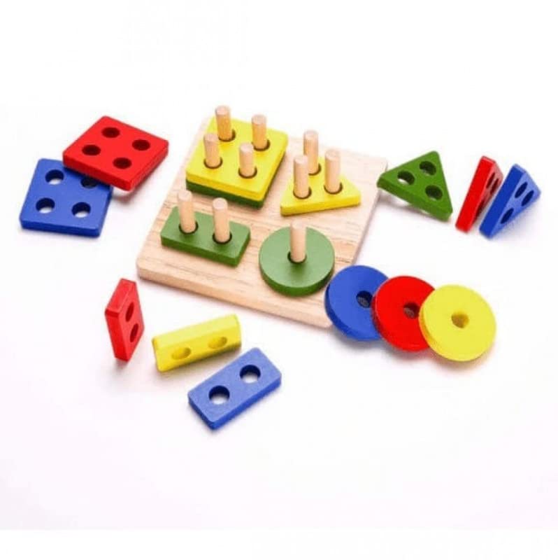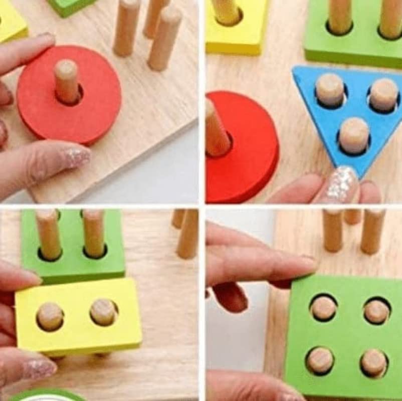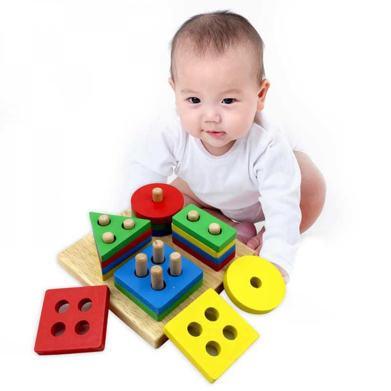 - يمكن للطفل أن يقترن الأشكال الهندسية بالعمود في أيديهم. يمكنهم تحديد الشكل وعد الثقوب الموجودة في العمود لتدريب الدماغ الأمامي والقدرة على التنسيق بين اليد والعين. الأشكال الهندسية المعرفية البسيطة
