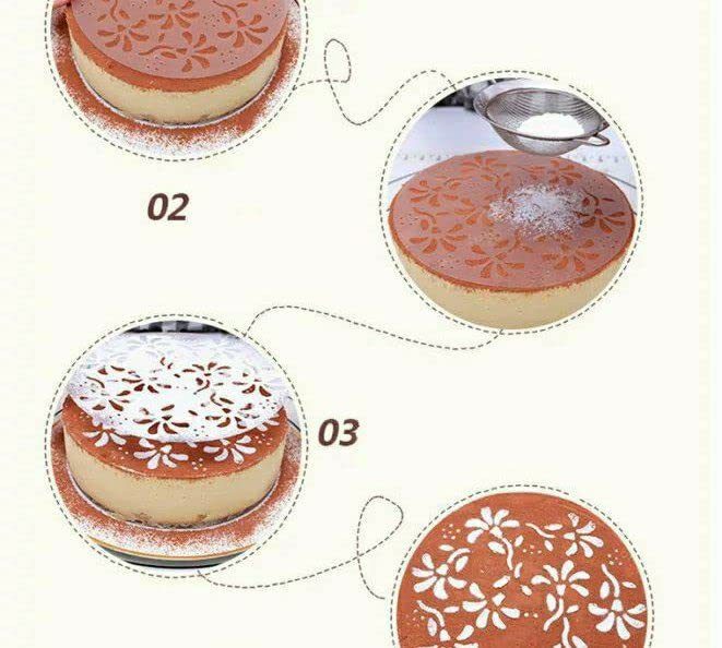 - استخدام سهل: ببساطة ضع الاستنسل فوق الكيك ثم رشه بمسحوق الكاكاو أو سكر البودرة أو رشه بملمع صالح للأكل للحصول على تصميمات ذات مظهر احترافي.