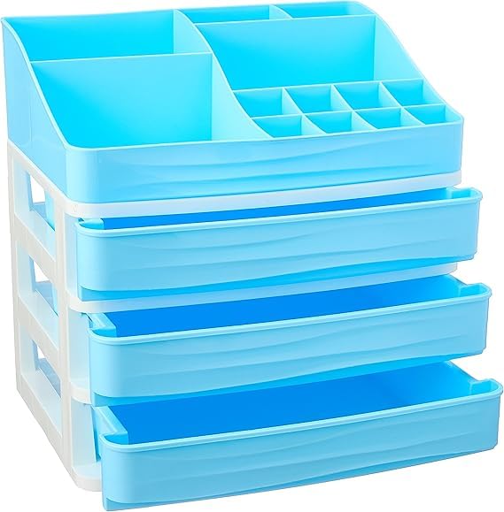 Generic - منظم مكياج من أوم، بتصميم متدرج، باللون الأبيض، مصنوع من البلاستيك، قابل للتكديس، مكون من أربعة أدوار وثلاثة أدراج