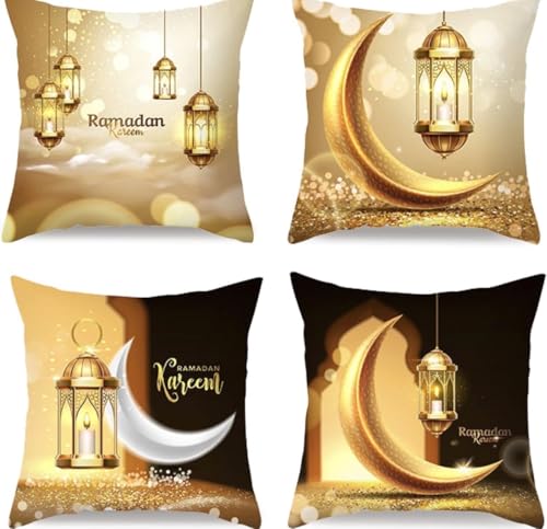 Generic - كوشن رمضان مجموعه من اغطية كوشن مخدة بتصميمات رمضانية 4 قطع - اكياس مخدة ديكورات فانوس وهلال العيد للمنزل والكنب والسرير 45 سم