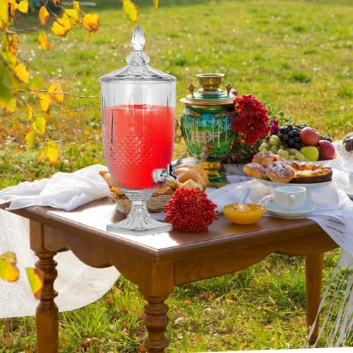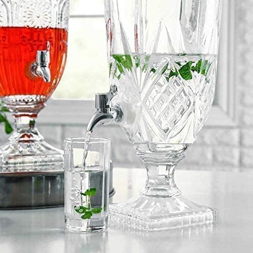 Generic - موزع مشروبات زجاج سعة 20 لتر- موزع مشروبات مثلجة كريستال كلاسيك مع حامل وحنفية لحفلات الزفاف - حاوية مشروبات بفتحة واسعة للعصير والشاي (1، نمط ليمونيوم سينينس)