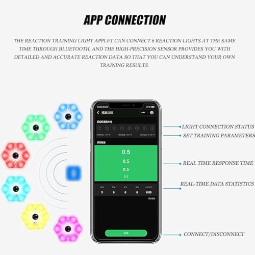 - 1. يوفر مصباح التدريب التفاعلي أوضاع إضاءة متعددة ويتصل بالتطبيق، ويدعم الإعدادات المخصصة لمختلف الرياضات مثل كرة السلة وكرة القدم والملاكمة وكرة الريشة، مع التركيز بشكل خاص على التدريب على وقت رد الفعل.