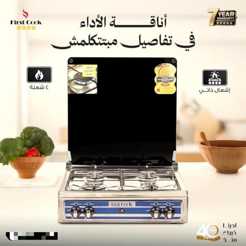 Generic - موقد غاز من فيرست كوك بأربع شعلات، مصنوع من الفولاذ غير قابل للصدأ، بنظام اشعال ذاتي، مع ضمان 7 سنوات