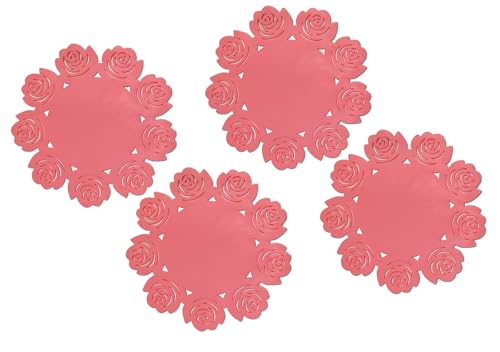 - قواعد أكواب من السيليكون العازل المقاوم للانزلاق من رنا ستور، حامل للمشروبات الساخنة والأكواب لديكور المنزل وطاولة المطبخ، 4 قطع - لون وردي- كود 7747.