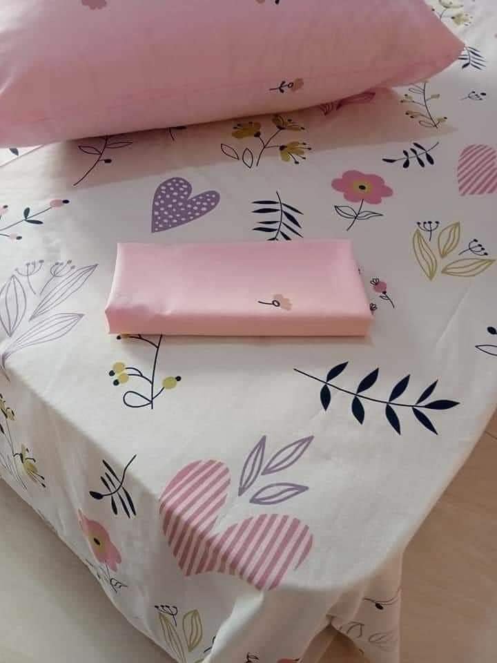 Generic - طقم ملايه 4 قطع من a.m.j قطن عامريه عالى الجوده ملايه 240x260 مع 1 كيس مخده طويله 160 سم مع 2 كيس خداديه 50x70 // (ملايه استك - مثبته لسرير 160 سم)، سادة، زهري