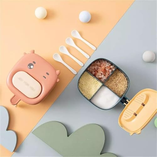Generic - صندوق توزيع توابل بأربع مقصورات مع 4 ملاعق برطمان طقم مطبخ متعدد الاستخدامات ألوان متنوعة