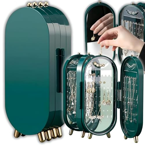 Generic - خزانة قلائد بـ 4 أبواب - قابلة للطي، مقاومة للغبار مع مرآة، مثالية للقلائد والأقراط الخضراء