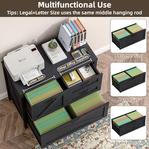 Vabches - خزانة ملفات جانبية خشبية مكونة من 4 ادراج لتعليق الخطابات / ايه 4 / الحجم القانوني، اسود ريفي