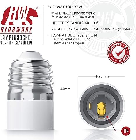 - محول مقبس المصباح، يمكنك تحويل حامل المصباح E27 إلى مقبس لاستيعاب لمبات E14.
