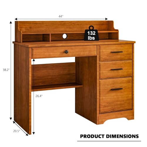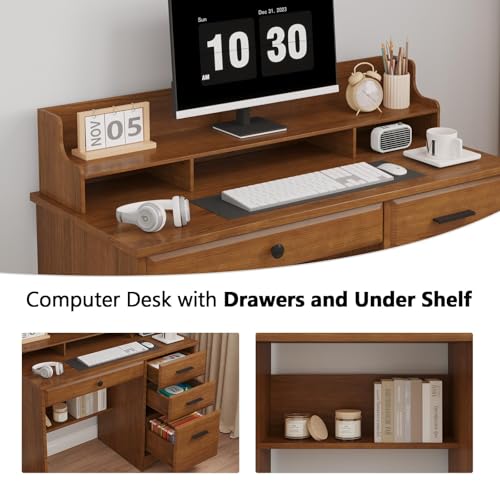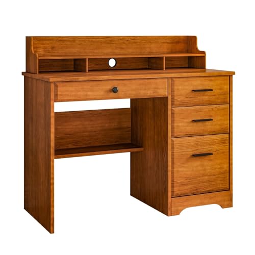 4 EVER WINNER - مكتب كمبيوتر مع أدراج وحامل شاشة مقاس 1.1 م، مكتب للدراسة مع مساحة تخزين وأدراج من الخشب لغرفة النوم من فور ايفر وينر، بني