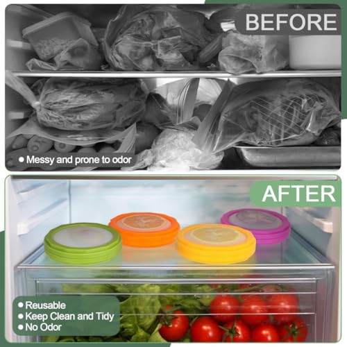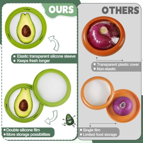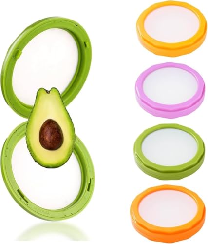 fashion mania - 4 حاويات تخزين لأنصاف الفواكه والخضروات، مصنوعة من مادة السيليكون مزدوجة الطبقات متعددة الألوان، سهلة التنظيف، مع وظيفة مضادة للأكسدة، مناسبة لتخزين الفواكه المختلفة في الثلاجة