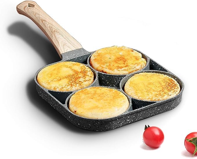 Generic - طاسة بيض غير لاصقة بـ4 فتحات، مقبض خشبي، أواني طهي متعددة الأغراض للأومليت والبرجر والبيض المسلوق
