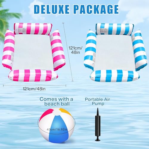 - 【عوامة حمام سباحة فريدة】تحتوي مجموعتنا 2 عوامة حمام السباحة، مجهزة بمضخة واحدة وكرة شاطئ واحدة، يمكن أن تلبي احتياجاتك المختلفة. تتكون من 4 وسائد متينة للطفو ومقعد شبكي متوسط ناعم، وهو مريح تمامًا. الحجم بعد النفخ هو 120 × 110 سم، وقدرة تحمل تصل إلى 300 باوند. يمكن أن تدعمك هاتان الوسادتان جيدًا للطفو على الماء، مما يسمح لك بالشعور بالطفو الرائع والحفاظ على توازن جيد.