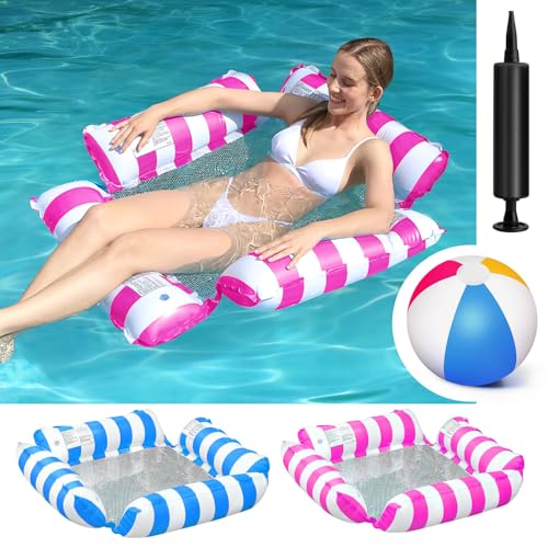 DoubleCare - لوح عائم لحمام السباحة للبالغين 4 في 1 مع مضخة وكرة شاطئ. لوح عائم قابل للنفخ لحمام السباحة، أرجوحة مائية محمولة مع شبكة سفلية للمناسبات الصيفية وحفلات حمام السباحة