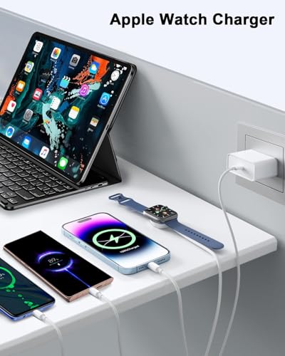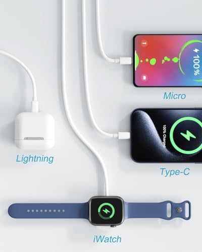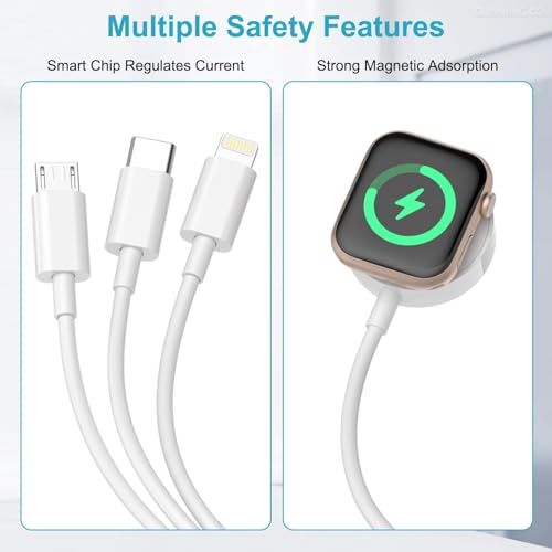 - تصميم محمول لكابل شحن ساعة آبل ووتش بمنفذ USB نوع C: يتميّز كابل شحن اي ووتش هذا بتصميم بسيط وأنيق، يناسب جميع الاستخدامات اليومية. خفيف الوزن وسهل الحمل، ويبلغ طوله مترًا واحدًا، مما يجعله مثاليًا للاستخدام في المكتب أو غرفة النوم أو أثناء السفر أو الرحلات العملية أو داخل السيارة. يحتوي على عدة منافذ شحن مدمجة، بما في ذلك منفذ USB نوع C، ومنفذ لايتنينج، ومنفذ Micro USB، بالإضافة إلى منفذ شحن لاسلكي مخصص لساعة آبل ووتش. شاحن ساعة آبل ووتش مزوّد بأربعة منافذ يغطي مجموعة متنوعة من الاحتياجات.