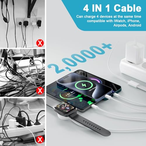 - منافذ إخراج 4 في 1 لكابل شحن ساعة آبل: يستخدم هذا المنتج أربع طرق شحن لشاحن ساعة آبل، ويمكنه شحن آيفون وساعة آبل وايربودز بالإضافة إلى الأجهزة المزودة بمنفذ Micro USB. لن تحتاج بعد الآن إلى حمل عدة كابلات شحن. تصميم المنافذ المتعددة المدمجة في شاحن آبل ووتش يُحرّر مساحة عملك من الفوضى ويُنهي مشكلة تكدّس الكابلات.