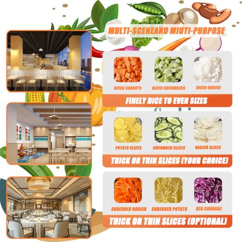 - تنوع من الدرجة التجارية: من البصل المملح لشاحنات الطعام إلى الملفوف المبشور لخدمات إعداد الوجبات، تعامل مع أكثر من 50 نوعًا من المنتجات، بما في ذلك الخضروات ذات الجذور الصلبة والفواكه الحمضية الرقيقة.