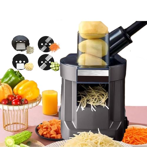 CNAOHGHN - قطاعة خضروات تجارية 4 في 1، للتقطيع والتقطيع والتقطيع، 4 شفرات من الستانلس ستيل، منفذ تفريغ مزدوج، محرك قوي، سعة كبيرة، تمزيق تلقائي للفواكه والخضروات