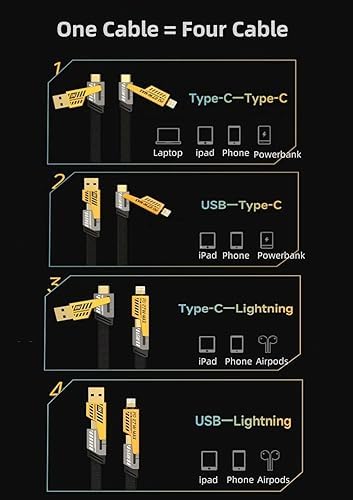 - ✅ تصميم قابل للتحويل 4 في 1: يشحن أجهزة متعددة في وقت واحد باستخدام كابل واحد.