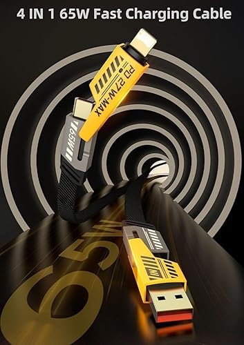 Generic - كابل USB-C سريع 4 في 1 للشحن ونقل البيانات بطول 1 متر وجهد 65 وات بتصميم مغطى بالنايلون لأجهزة متعددة كالموبايل والتابلت واللاب توب