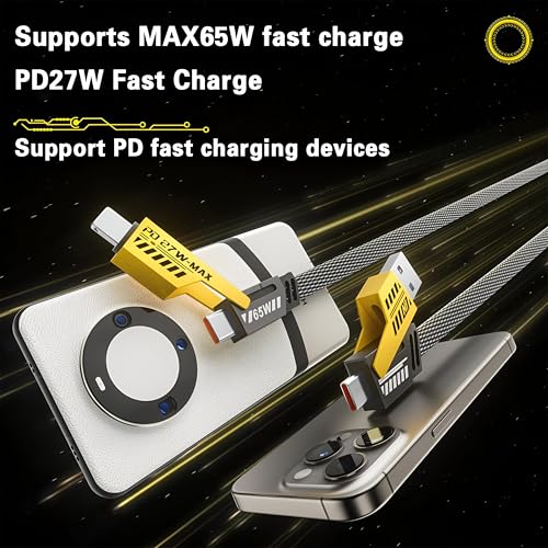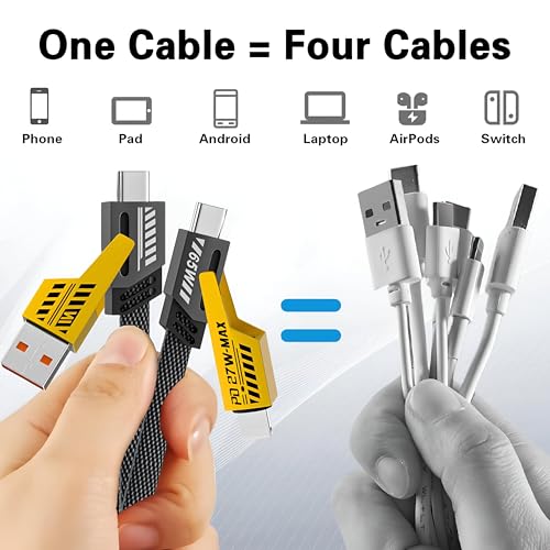 Generic - كيبل شحن سريع 4 في 1 - كيبل مستطيل متعدد المنافذ بطول 2 متر مع منافذ USB-C وUSB-A ولايتنينج، دعم طاقة 65 واط ونقل بيانات عالي السرعة للجوالات والتابلت واللابتوب والايربودز