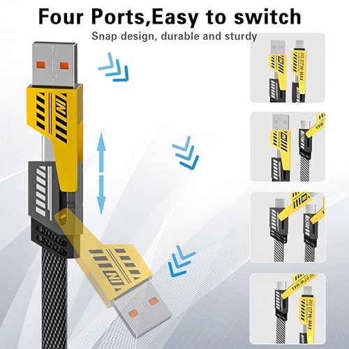 - يدعم هذا الكابل 4 في 1 معايير شحن متعددة مع أربعة موصلات مدمجة - USB-A إلى USB-C، USB-C إلى USB-C، USB-C إلى لايتنينج، USB-A إلى لايتنينغ - مما يضمن توافقًا سلسًا مع أجهزة ايفون وهواتف اندرويد والتابلت واللابتوب وسماعات ايربودز ووحدات تحكم الألعاب مثل نينتندو سويتش.
