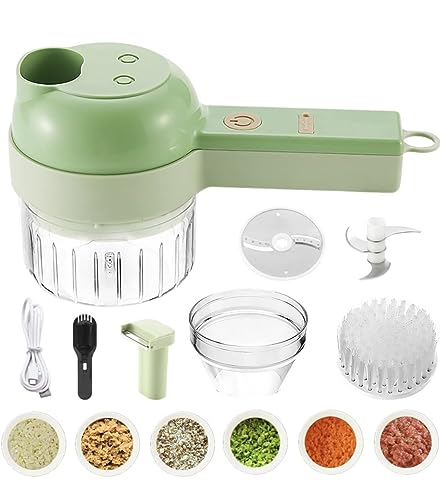 Spaceshoop - مجموعة قطاعة خضروات محمولة 4 في 1 لاسلكية مع مجموعة فرش 4 في 1، قطاعة الخضراوات المحمولة اللاسلكية مع مجموعة فرش