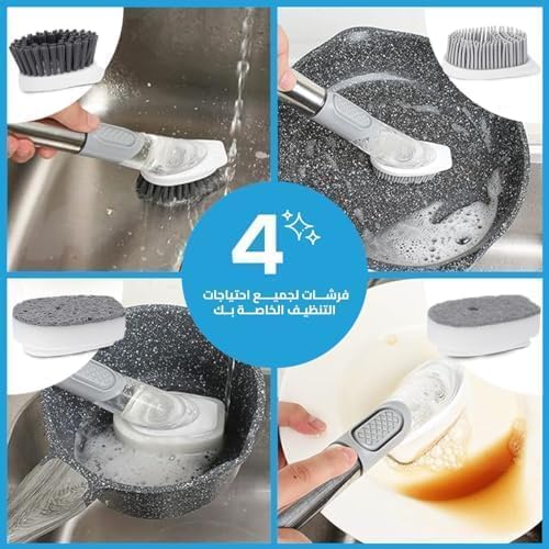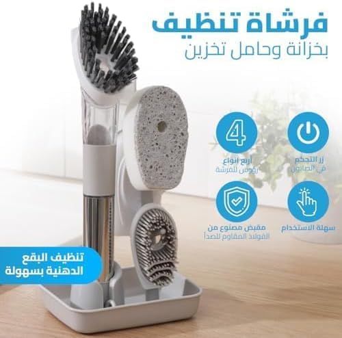 - تصميم متعدد الوظائف: يأتي مزودًا بأربعة رؤوس فرشاة قابلة للتبديل، كل منها مصمم لمهام تنظيف محددة في المطبخ، مما يضمن تنظيفًا شاملاً للأطباق والأواني وأسطح الطاولات والمساحات الضيقة.