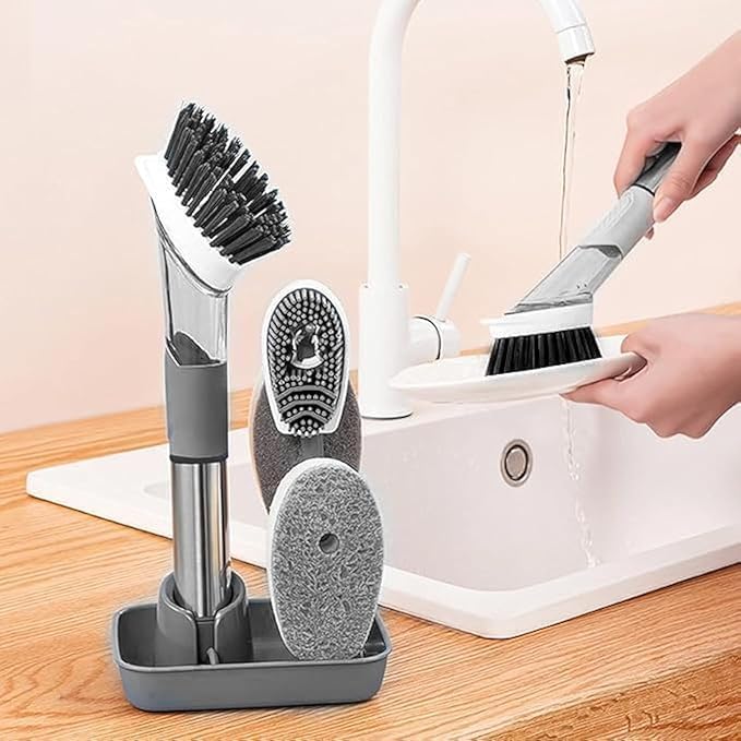 Generic - مجموعة فرش تنظيف المطبخ 4 في 1: اداة متينة متعددة الرؤوس للاطباق والاواني والمزيد - تصميم محمول ومريح مع رؤوس قابلة للتبديل للتنظيف الشامل (رمادي)