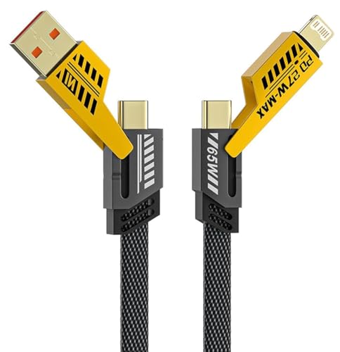 - كابل بيانات سريع متعدد الشحن USB 4 في 1 مضفر بقدرة 65 وات متوافق مع أجهزة آيفون/ اي باد/ ماك بوك برو/ ايربودز/ سامسونج/ أندرويد.
